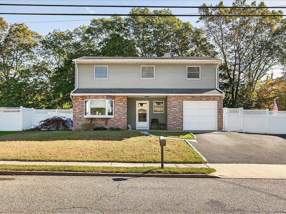 Welcome to 149 Avenue C, a beautifully maintained split-level Colonial located in the heart of Holbrook within the desirable Sachem School District. This spacious 4-bedroom, 1.5-bath home offers 1,703 sq ft of comfortable living space designed for both relaxation and entertaining. The main level features a bright eat-in kitchen, a cozy den perfect for gatherings, and a convenient half bath. Upstairs, you’ll find an additional living space and four generous bedrooms accompanied by a full bath. Step outside to your private backyard complete with an in-ground pool and cement patio, perfect for summer entertaining or unwinding after a long day. Additional highlights include a partial unfinished basement with laundry area, an attached one-car garage, and a fully fenced yard. Enjoy peace and privacy while being conveniently located near local parks, shops, restaurants, and the Ronkonkoma LIRR station, just 2.8 miles away for an easy commute. Don’t miss this move-in ready home with endless potential in a prime Holbrook location!