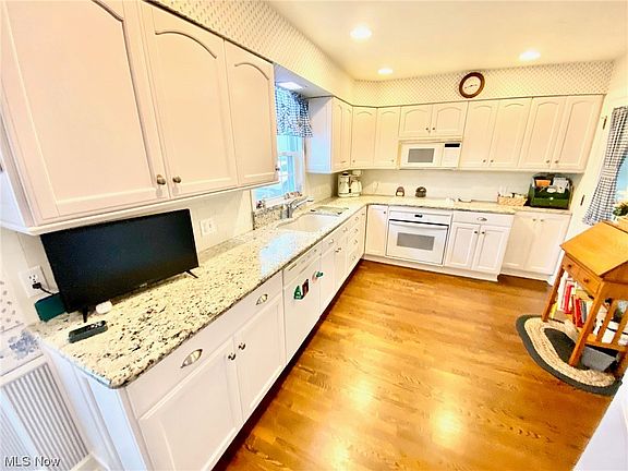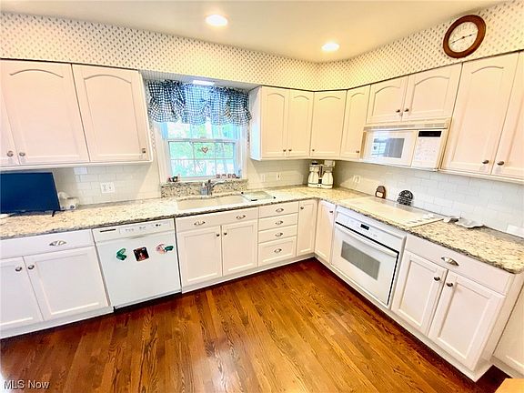 Beautiful West Akron colonial. This home features 4 bedrooms, 2.5 baths, and a 3 car garage situated on a double lot. The eat-in kitchen has been updated including cabinets, granite countertops, newer appliances, and tons of cabinet space. You will love the hardwood flooring throughout the first floor. The formal dining room features Built-in cabinets and recessed lighting. The formal living room includes a gas fireplace. On the second floor you will find 4 spacious bedrooms and 2 full baths including one Jack and Jill bath. Enjoy summer evenings relaxing in the 3 season room which includes a hot tub. In the basement level you will find a 11 x 20 family room with a fireplace and is finished in wormy chestnut. Some of the major updates include the siding and roof in 2020, the 90% efficient furnace with air cleaner and central air in 2019, and newer replacement windows throughout. You will love the double lot with its mature trees and beautiful landscaping and includes a lawn irrigation