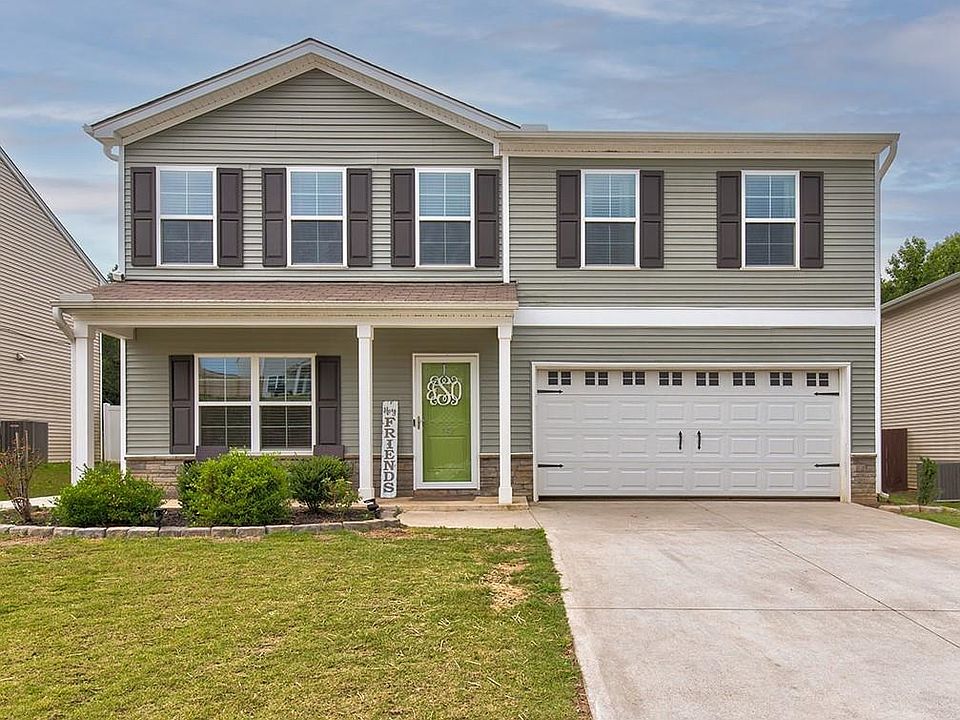 Spacious, like new 2 year old home wkith 4BR, 2.5BA, andbonus room. Step in to find beautiful LVP floors, den/office, formal dining room, open kitchen and great room freestanding fireplace(electric heater). Kitchen has granite counters, breakfast bar, smooth-top range, elec oven, built-in microwave. Upstairs you havethe huge master BR, walk-in closet, & BA w/ dual sink, granite counters, sep tub & shower. There's also an open loft. Backyard isfenced and overlooks the woods. Country feel, yet 15 minutes from dntn Spg, 10 minutes from 85, close to shopping and so muchmore. Come get this one before it's gone!