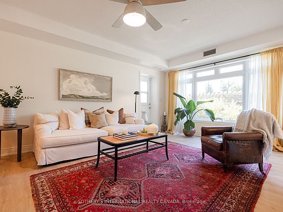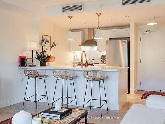 It's not often that you find a condominium fitting into a natural landscape. And it's not often that you find one that takes advantage of village life. 149 Church Street is focused on both with its beautiful setting and a stroll away from bespoke coffee shops, boutiques and sourdough! Larger than most, Suite 216 includes updated bathrooms, with heated floors, a kitchen that includes morning coffee over quartz counters and cabinetry that marries well with a collection of cookbooks. A rare light-filled dining area and garden view terrace as well as new flooring and custom light fixtures complete the picture. Laundry, HWT and heating unit within each suite. This smaller boutique building includes a pool, exercise room, party room with kitchen, games and library spaces. A private green space. The village has a life of its own with events throughout the year that bring local interests and community together.