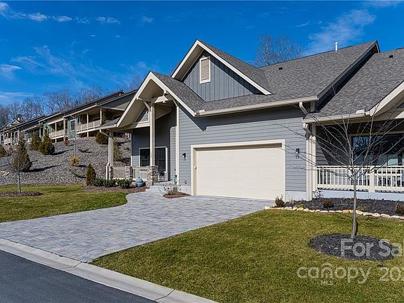 Excellent opportunity to purchase this gorgeous end unit, one level, 2 bedroom, 2 bath townhome in the gated community of Cummings Cove. Soaring cathedral ceilings make this open floor plan live extremely spacious! Luxurious floor plan, walk in closets, gas log fireplace with custom mantle, ceramic tile baths, spacious laundry room with pantry storage, black stainless appliances, leathered granite kitchen counters and custom finished garage floor are all part of this upgraded plan. Newly encapsulated crawl space in 2023 comes with a 25 year warranty. Year round mountain views from the front porch make this an idyllic setting. Spacious covered back porch with extreme privacy offers an opportunity to enjoy the cool mountain air day or night! Whole house fan with quiet motor lets you cool the home naturally also! This unit looks like a model home, but is available now. Cummings Cove is a “Where to Retire Magazine’s USA Top 50 Master Planned Community.” Inspected and move in ready!