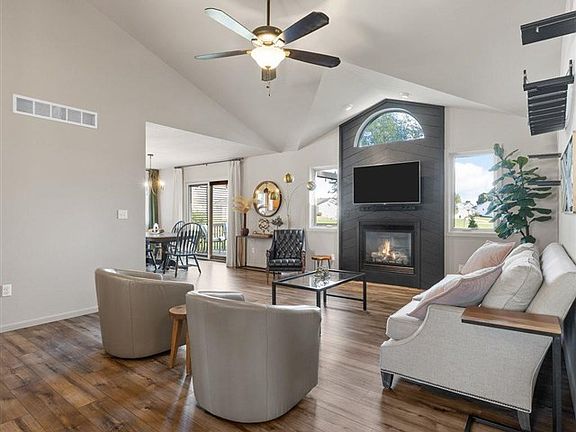 Bring your clubs! With peekaboo views of Anamosa’s 9-hole Fawn Creek Golf Course & ample room for golf cart parking in the oversized 2-car garage, this beautifully updated 4-bedroom home is so much better than “par for the course!” Step inside to vaulted ceilings in the living room, new LVP flooring & fresh paint throughout, & a black shiplap floor-to-ceiling feature wall with linear fireplace. Sunny daily dining area with sliders leading to the refreshed maintenance-free deck & a shaded yard with mature trees for added privacy. Large kitchen with maple cabinets, updated hardware, big island/breakfast bar, updated black appliances, motion sensor gooseneck faucet, & large pantry. Sizeable laundry room (Whirlpool appliances stay) with convenient utility sink & mud room/drop zone area off the garage entry. Three spacious bedrooms on the main level, including the generous Primary Suite with tray ceiling, walk-in closet, & a tastefully updated ensuite bath. Full bath in the hallway has also been updated with new faucets, fixtures, lighting, mirrors, vanity, toilet, & towel bars! New carpet on the steps down to the lower level with its spacious rec room space, tile area with sink for a future wet bar, an additional bedroom, & another updated bath. Solid 6-panel doors; underground pet fence. Lots to love here – come & see!
