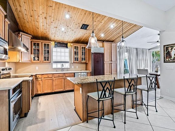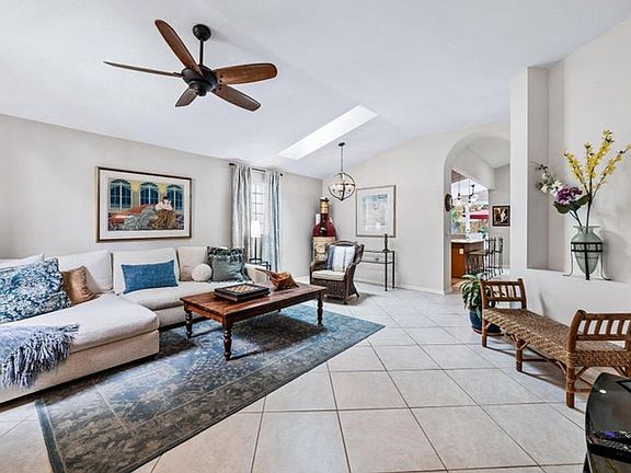 Immaculate 3-bedroom, 2-bath annual rental located in the highly sought-after gated community of Stonebriar. This beautifully maintained home features vaulted ceilings, skylights, impact glass, newer roof (22) and a desirable split floor plan. Enjoy newer Bosch and Whirlpool appliances, a Sub-Zero refrigerator, double ovens, new washer and dryer, and an additional fridge in the garage. Coastal-style wood, tile, and laminate flooring flow throughout, complemented by fresh paint. The spacious primary suite includes a king bed, Jacuzzi tub, and all bedrooms are outfitted with new mattresses. A tankless water heater adds efficiency, while 9-foot retractable impact sliders open to a serene, fully fenced backyard and private patioperfect for indoor-outdoor living.