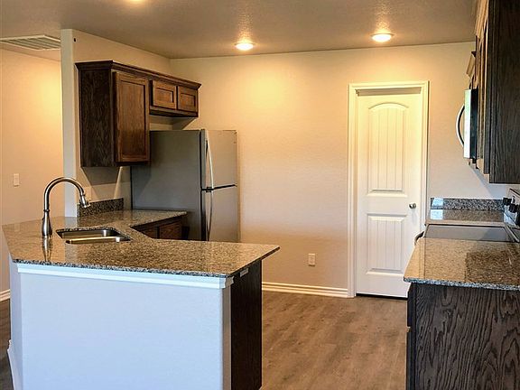 Large New 2/2 duplex with single car garage! Open floor plan. Some of the features include granite kitchen tops, custom built wood cabinets and a very large pantry. Appliances include dishwasher, oven, microwave, refrigerator, washer and dryer. Large master closet and a walk in shower in the master suite. Owner will mow the yard. Broker is related to owner. Owner/Agent