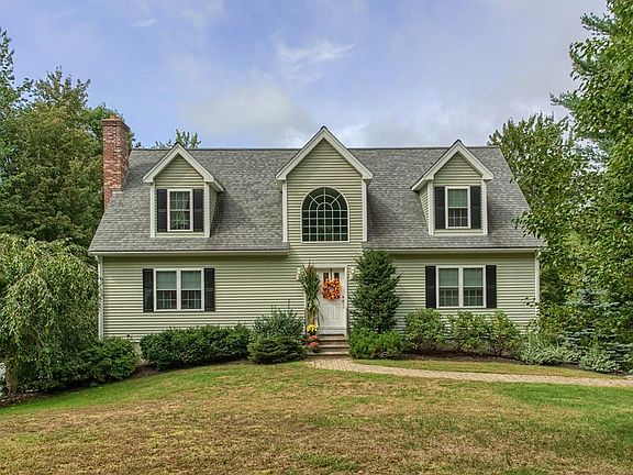 Custom Contemporary Cape in EXCELLENT condition. Situated on 3.3 acres surrounded by nature, mature landscaping & flower gardens. This home offers quality construction throughout w/a pleasing floor plan. Inviting, bright, two story foyer w/palladium window & double closets. Comfortable living room w/wood burning fireplace & mounted smart TV to convey. Oak cabinet kitchen w/center island, stainless appliances, large dining area & slider to a private deck over looking the back yard. First floor master bedroom w/large walk in closet & master bath w/linen closet . Half bath w/laundry & storage completes the first level. Head up stairs for a nice surprise! Large loft family room w/projector for movie night! Two additional bedrooms w/ample closet space & full hall bath w/linen closet. All bathrooms, foyer & kitchen have tile flooring. Need more space? Walk out basement w/slider to patio is perfect for finishing. Fenced in back yard. 10x16 Reeds Ferry shed w/loft. You will LOVE this home!