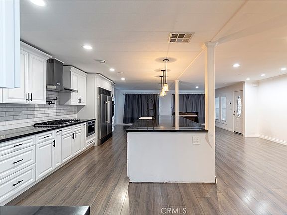 Absolutely STUNNING well priced and completely remodeled manufactured dream home conveniently located in central Orange County. This home was completed remodeled in 2021; over $100,000 in upgrades. Everything in the kitchen was upgraded from cabinets, sink, extra large island, KitchenAid appliances, Large commercial refrigerator, ice machine, beverage refrigerator and dishwater under kitchen island. You will also find a neat feature over the stove, a pot water filler. New bathroom vanity and mirrors, barn doors leading to master bathroom and laundry room. Extra large shower in the master bathroom. All windows have been replaced. All baseboards have been replaced and brand new laminate flooring has been installed. Brand new central air system with a Nest thermostat that controls the entire mobile home. Patio has been completed re done. Used to be a 3 bedroom, was converted to a 2 bedroom after the remodel to make a bigger kitchen and living room, could be converted back to a 3 bedroom.