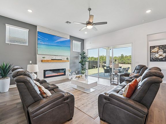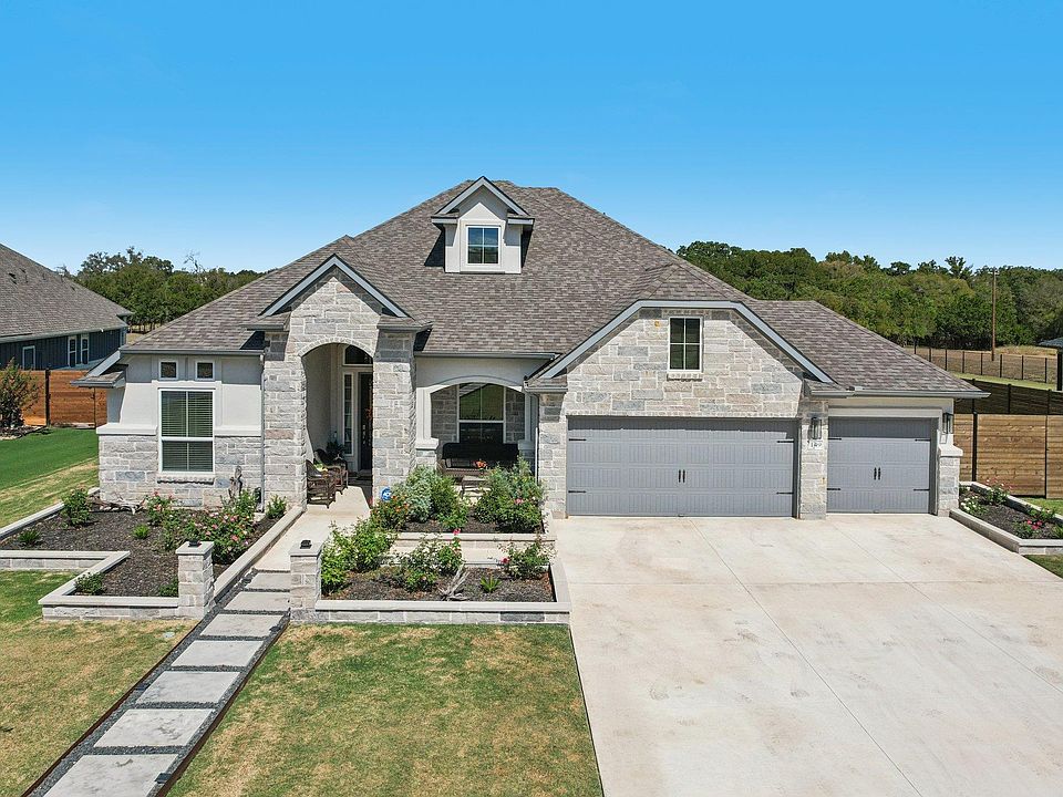 Beautiful single-story home in the desirable Northfork community, set on 1.88 acres backing to the San Gabriel River. Featuring stunning curb appeal with a stone and stucco exterior, lush landscaping, a covered front porch, and a 3-car garage, the property offers the perfect blend of elegance and comfort. Inside, an open floorplan filled with natural light showcases wood flooring throughout and a spacious living room with an electric fireplace and sliding glass doors leading to the covered back patio. The centrally located HUGE kitchen is designed for both everyday living and entertaining, featuring double islands, a breakfast bar, quartz countertops, ceiling-height cabinetry, and premier stainless-steel appliances including a gas cooktop with a custom vent hood and double ovens. The private primary suite includes a tray ceiling, electric fireplace, walk-in closet, and spa-inspired bathroom with separate vanities, a freestanding soaking tub, and an oversized walk-in shower. Three guest bedrooms and two full guest bathrooms provide ample space for family or visitors, while a powder room and dedicated office with French doors add flexibility and functionality. The covered back patio overlooks a massive backyard framed by mature trees and the serene San Gabriel River, offering a peaceful and picturesque setting to enjoy year-round. Schedule a showing today!