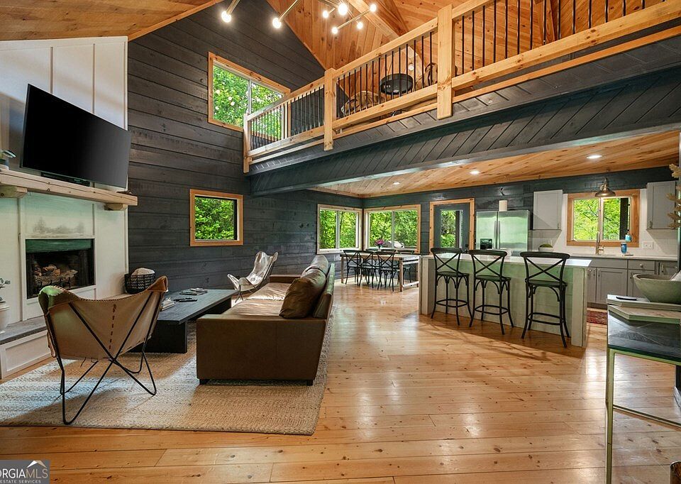 SOLD TURNKEY - Fully Furnished & Airbnb Ready! Discover 149 Happy Hollow, a newly remodeled 3-bedroom, 3-bath luxury-rustic cabin with loft and full game room/movie room, boasting no HOA or restrictions and an impressive 151 feet of serene Wolf Creek frontage. Perched above the tranquil waters, this exquisite property blends modern upgrades with timeless cabin charm, offering a flexible layout perfect for Airbnb hosting, full-time living, or an indulgent second home retreat. Lovingly maintained and thoughtfully enhanced, it has served as both a cherished personal escape and a successful part-time rental. The upper level showcases a spacious game loft, a private balcony bedroom, and a full bath, while the main level features a chef's kitchen adorned with a marble island, custom wood cabinetry, stainless steel appliances, pantry, and open dining space. The inviting living room exudes warmth with hardwood floors, a crisp white gas-log fireplace, and soaring ceilings. A main-floor bedroom offers a grand walk-in closet and a spa-inspired ensuite bath. The finished basement presents another bedroom and bath, an expansive game/movie room, laundry area, and direct walkout to a charming creekside sitting area. Outdoors, a sprawling back deck, brand-new hot tub, and magical firepit with string lights invite year-round enjoyment. Recent upgrades include all new flooring, paint, kitchen and bath renovations, lighting, fireplace, well, water filtration system, landscaping, and a gently winding gravel path leading to the creek. Perfectly positioned just minutes from both Blue Ridge and McCaysville, this easy-access cabin offers unmatched convenience without sacrificing privacy. Whether you envision it as a permanent residence, a weekend hideaway, or an income-generating investment, 149 Happy Hollow delivers on every level! Located next to many outdoors things to do such as Fall branch Falls, Swinging bridge on the Toccoa River, Jacks River Falls and Bald River Falls, Sea Creek Falls, Aska adventure area and more! Yet only a quick drive from Downtown Blue Ridge and Downtown Mccaysville!