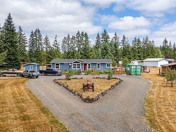 Turn-key hobby farm! At just over 2.5 acres, this farm is manageable, yet functional. Inside the house, you'll find an open concept with the primary suite on one side of the home and spare rooms on the other. Wood stove makes a cozy living room. Large primary suite with a bathroom has bonus space so bring your imagination. Two spare bedrooms offer versatility. Bonus room is the perfect home office or den. Do you want to raise livestock and grow your own vegetables? This yard already has raised garden beds and plenty of fruit trees. Head out to the fenced pasture where a barn and several sheds offer dry storage. Chicken coop is already in! This place has it all, not to mention the brand new roof and heat pump!