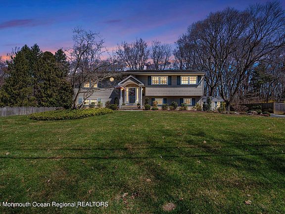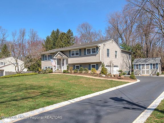 4/5 BR 2.5 BA ~3382SF home on a cul de sac in desirable Lincroft.Hardwood Flrs,frt Anderson tilt in windows. Custom Kitchen w/vaulted ceiling breakfast rm open to F/R has maple cabinets,coffee bar,beadboard Center Island,dble sinks, 5 burner stove, dble oven w/ warming draws, french doors to deck w/ gas line for BBQ.Spacious MBR suite w/ xlarge WIC.Spa like MBA:lrg glass shower & dble sinks.1st level is a joy to the family as well as guests. 2nd F/R ~21x22SF w/ F/P, custom bar w/ leathered granite c/top,wine refrig ,wall of windows & Fr Door to newer patio. Office/Craft/Rm is designed for organization w/ Built in's & desk .22x20 Playrm/BR .Large Mud rm ,laundry & utility rm More... Home has beautiful curb appeal.Paver Patio is 1 yr old. There are lots of windows to create natural light.Painted in great colors. 2 Zone Heat & Air.Floored attic w/ pull down steps.1st level has beautifully crafted Barn Doors, F/R w/fireplace & custom bar w/ under counter lighting & wine refrig w/vented front. Speakers in Kitchen,Den, D/R, deck & patio. Ceiling fans,recessed lights,automatic lighting. ADT alarm system.Google Nest for thermostats & video doorbell. Digital Networking box Structured cable.Shed matches outside of home.Sprinkler system.This home is your own private sanctuary.