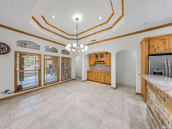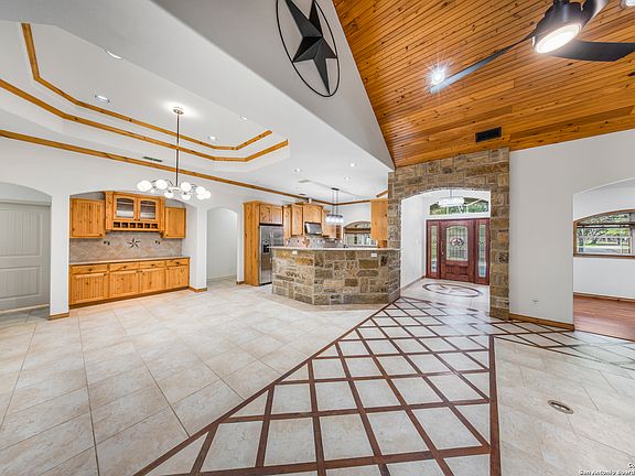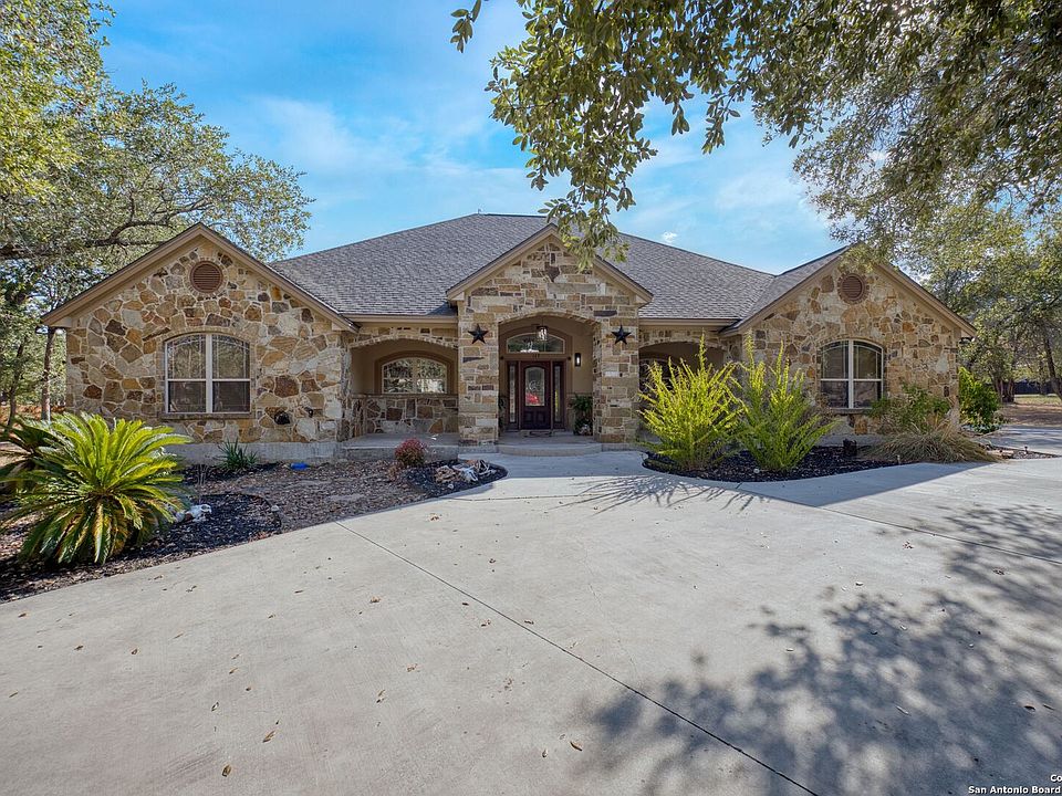 This beautifully maintained 4 bedroom 4.5 bath custom rock and stucco home sits on a spacious 1.269 acre lot with a circular driveway and a secondary access driveway for added convenience. Designed with comfort and style in mind, the open concept layout features a grand entryway, vaulted ceilings, tile and wood flooring, and a formal dining room. All rooms boast high ceilings, and each bedroom includes a lighted walk in closet. The living room offers a cozy wood burning stove, while the island kitchen showcases custom cabinets, granite countertops, double ovens, and a built in china cabinet in the breakfast area. The private primary suite includes a spa like bath with dual vanities, a soaking tub, and a separate walk in shower. Secondary bedrooms feature private en suites and a Jack and Jill bath setup. Upstairs you'll find a bonus room complete with a full bath, perfect for use as a guest suite, game room, or home office. The large utility room includes a wash sink for added convenience, and the home is equipped with three cooling units including a mini split in the loft. The attached carport offers convenient covered parking. Additional upgrades include a new high definition shingle roof installed in April 2023. Located in the sought after Legacy Ranch community, this property combines space, quality, and charm, and it's the best priced home per square foot in the area. Schedule your showing today!