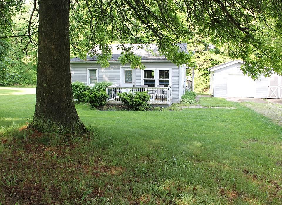 Did you ever think that you could live "in the country, but really not?" Welcome to 149 Leiter Rd, Lucas, Ohio. This ranch style home sits on a stunning 1.77 acre lot equipped with a little creek, covered rear deck, open front porch, a 1 car detached garage with an attached man cave, or she shed and a nice little campfire spot already in place. 2 bedrooms, 1.5 baths, main floor laundry, open floor plan concept and all public utilities. All kitchen appliances come with.