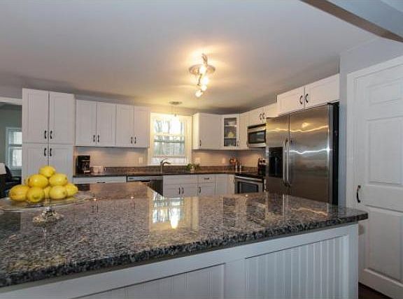 Style and livability with a youthful edge! Remodeled and updated, this roomy 3 bedroom home gives you a generous 1,700 sq ft to move about. Kitchen is a cooks delight, granite counters, multitude of cabinets, stainless appliances, L-shaped island. Bright, open floor plan flows from kitchen into fireplaced living room, eating area and a cozy room off kitchen for some quiet time! Lower level offers a front to back family room with handy built-ins, 3/4 bath and laundry hookups. Well planned mudroom with entrance from outside, catches all the day to day things. Enjoy the summer with family and friends floating around the inground pool. In addition to the kitchen, bathrooms, flooring, appliances and light fixtures other updates include, roof, window and leaching field.