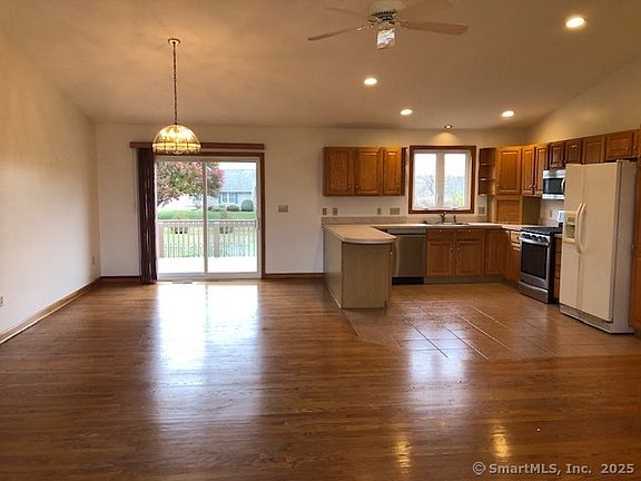 Welcome to 149 Melrose Road, East Windsor - a beautifully maintained raised ranch offering serene, open-field views through a newly installed picture window in the living room. This inviting home features an open-concept floor plan with 3 bedrooms, 2.5 baths, and a finished lower level complete with a cozy wood stove. The interior has been freshly painted and includes new flooring in the primary bedroom. Additional highlights include a newer roof, newer central air conditioning, an underground sprinkler system, and a oversized two-car garage. Enjoy comfort, space, and peaceful country views - all within easy reach of local schools and amenities. Picture window is back ordered will be installed with next 10 days.