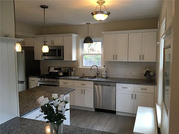 Picturesque Elmhurst, neighborhood, totally renovated, all new throughout, new cabinets, granite, stainless, flooring, windows, double parlor, gleaming hardwoods, paint. Updated utilities, newer roof and siding.
