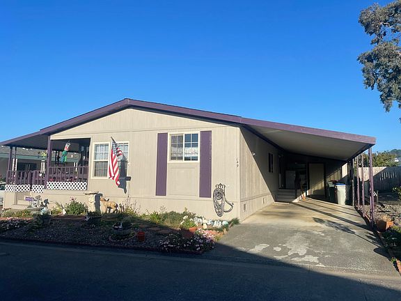 This well maintained 2 bed 2 bath home is located in Fortuna's desirable Royal Crest Estates senior (55+) community. The home features new laminate wood flooring throughout the spacious living room and dining nook. The bright kitchen has skylights and includes stainless steel appliances with plenty of room for cooking and baking. The home has dual pane windows and custom window coverings. The front porch was redone in 2021. There are two outdoor sheds for extra storage space. The shed at the end of the carport has electricity and light. In addition to the charm of this home, the neighborhood is quiet and friendly. Pets are allowed with park approval. Current space rent is $845. Contact your favorite Realtor to set up a showing.