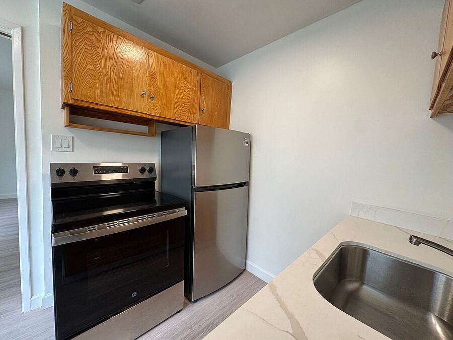 Step into this inviting and freshly updated studio apartment, perfect for a minimalist lifestyle with a touch of warmth and character. The unit features gleaming hardwood floors, modern lighting, and a clean, functional kitchen with upgraded cabinets and sleek black appliances. Natural light streams through large front-facing windows, creating a cozy and open feel.