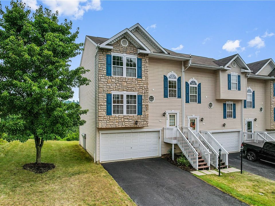 It's your lucky day! Beautiful end unit in move-in condition. *1st floor includes pretty powder room; laundry room; trend-setter kitchen with stainless appliances; huge living room/dining room with lovely bamboo flooring and a gas fireplace; sliding door to deck with an amazing panoramic view. *2nd floor includes master BR with full bath; 2 additional bedrooms and main bath. Brand new w/w carpet in bedrooms, hallway and steps. *Lower level has space for storage and/or exercise equipment, 2 car garage and a door to the backyard. HOA is per month and includes lawn care, grass cutting, snow removal-street only, roof, and siding. Great location near downtown Pittsburgh, airport, shopping, major highways.