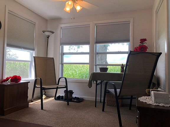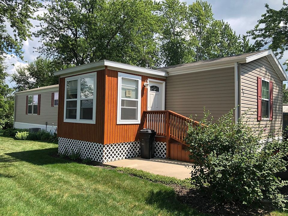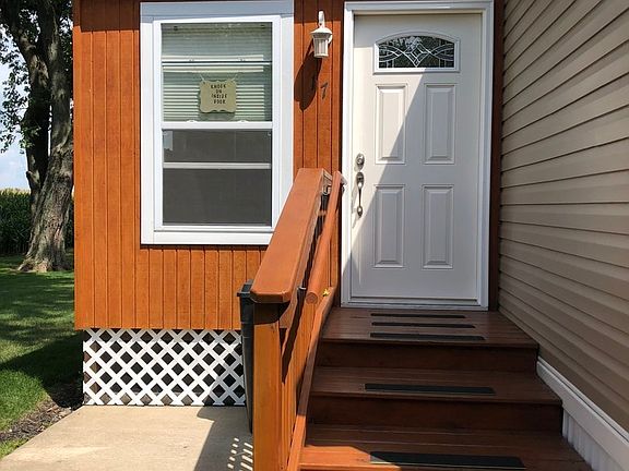 Location is a winner with this 2013 Mobile Home that backs up to field. Immaculate condition, 2 Bedroom and 2 Bath. Master Bedroom offers WIC and large bath with large seated shower. Sun porch plus separate screened porch with storage cabinet. Very peaceful setting, beautiful yard with shed, flowers and other perennials. Lot rent is only $330! 20x21 carport! All appliances and stack washer/dryer are included. Storage under both porches. Mature trees! Included in the monthly lot rent is garbage pickup, septic maintenance and well maintenance and testing. Each owner mows their own lawn. **Please note this is a 55 and older park.