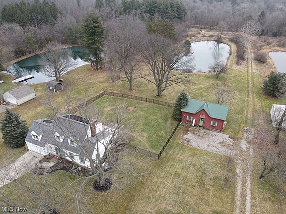 Imagine waking up each morning to the gentle ripples of a nearby pond and the soft glow of sunlight dancing across its surface. Whether enjoyed from the cozy confines of your home or the airy expanse of your backyard, the pond views are nothing short of enchanting. While brimming with old-world charm, this Cape Cod retreat also offers modern comforts and conveniences. Harwood floors run throughout. The classic white kitchen features built-in cabinets with glass doors. The first floor office is flooded with natural light and features an exposed brick wall with tiered shelving. The spacious dining room opens to the deck through a sliding glass door. Up just 8 steps is the owner's suite complete with walk in closet and ensuite full bath. The two additional bedrooms and full bath are up another flight providing privacy yet accessibility. All rooms are ample sized and the home has plenty of storage throughout. The basement is partially finished with a kitchenette with second range, additional living area, and laundry / utility area. The barn is a hobbyists dream come true. Perfect for a car enthusiast, practice space for a budding musician, hosting fantastic parties, or actually housing your farm animals. The pond is the perfect place to enjoy summer evenings dipping a line in the water or even just your toes. This nearly 5 acre property is a true oasis. Many updates including furnace 2020, roof 2017, windows 2019. Ask your agent for a full list. Home also has a whole house generator, solar panels, and an allotment of free gas. One year home warranty included. Medina mailing address, Bath Township location, Revere Schools.