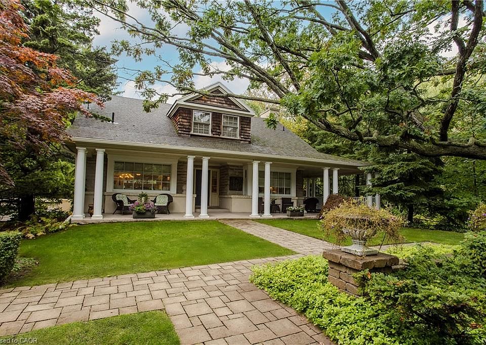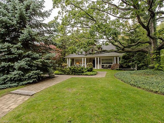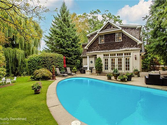 Rare opportunity to own a magical property across from the water with a double wide lot of 120 ft frontage. This South Burlington gem with pool is a character-filled 2 Storey retreat with an oasis yard for any nature lover. Just steps from the lake and minutes to the golf, country club and LaSalle Park. With 3,886 sqft of total living space, it presents a unique opportunity for growing families seeking space, lifestyle, and timeless charm in one of the city’s most coveted locations. Enjoy the serenity of a quiet residential setting while being only minutes from schools, parks, shops, dining, and all major amenities. From the moment you arrive, the curb appeal is undeniable—mature trees, professional landscaping, an interlock walkway, and a wraparound porch set the tone for the warmth inside. The open-concept main floor showcases hardwood throughout, anchored by a chef’s kitchen blending modern finishes with classic design. Featuring a spacious island with breakfast bar and wine storage, granite countertops, custom cabinetry, SS appliances, and a cozy window seat, it flows into the dining area & coffee bar with seamless access to the yard. A formal living room with fireplace and a sunken family room with coffered ceilings, wall-to-wall windows, gas fireplace, and walkout make this a true gathering hub. Upstairs, the expansive primary suite is a private retreat with dual walk-in closets and a spa-like 5pc ensuite complete with soaker tub, dual vanity, & oversized glass shower. Two additional bedrooms each boast their own luxurious full ensuites, while the convenience of upper-level laundry adds everyday ease. The fully finished walkout basement extends the living space with a spacious rec room, games room, and an additional full bath. Outside, the lifestyle continues in a fully fenced backyard with ample green space for kids and pets, interlock patio, built-in BBQ area, shed, and a concrete gunite pool—perfect for summer entertaining.