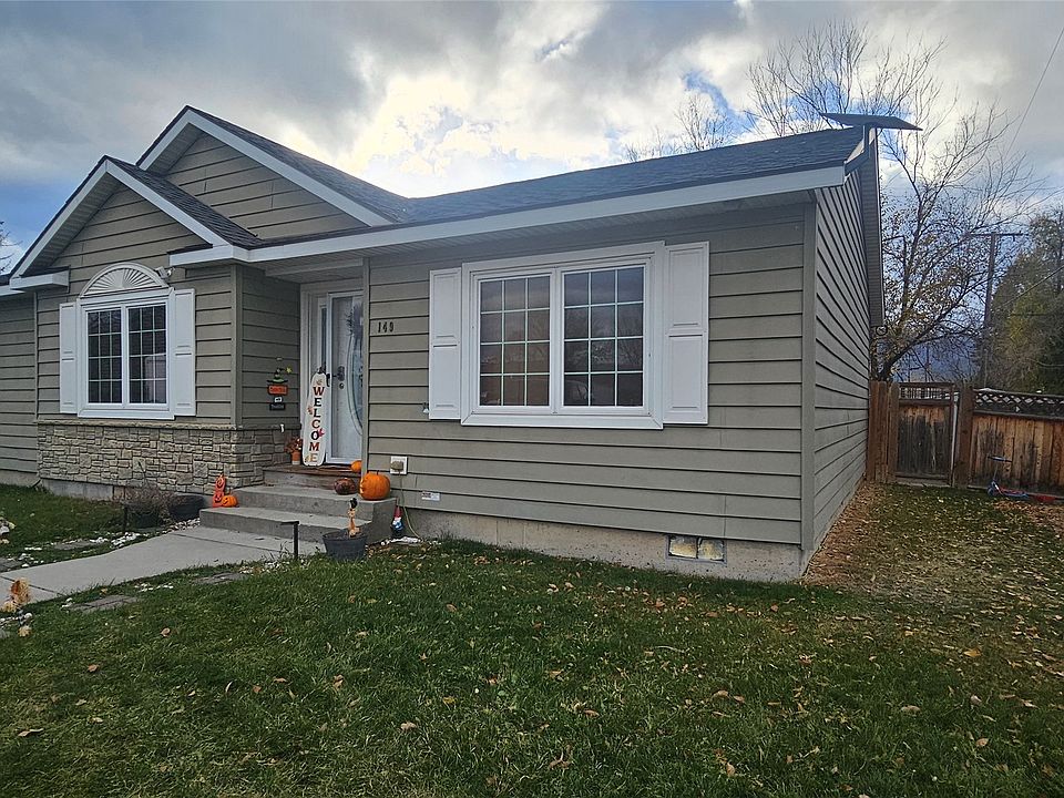 Modular home sitting on a level lot with a fenced back yard where you will find a good sized storage shed to store all your gardening tools and lawn equipment. There is ample parking out front of the home which is close to the bank, post office and several food establishments. This home offers a nice open floor plan with a vaulted ceiling and some nice finishing touches throughout. The laundry offers a mud room entrance from the backyard with vinyl flooring which is great if you have pets coming in from outside. The bedrooms are a good size with two on the South side of the home and the master on the North side. The master suite offers a walk in closet and the bathroom is a good size with a garden tub and a separate shower. The floor plan of this home makes good use of space along with offering decent size rooms.