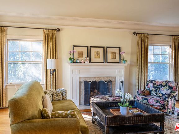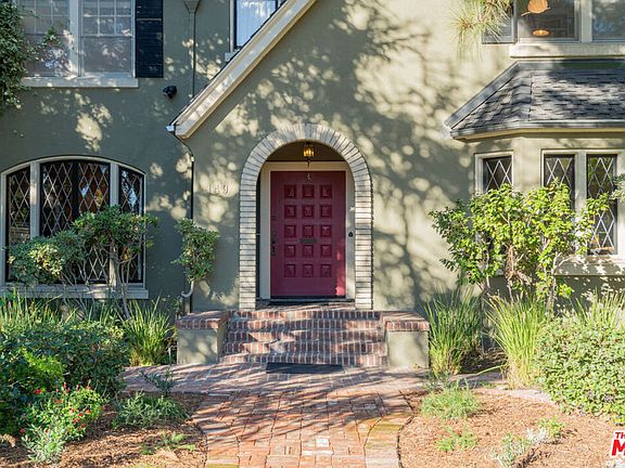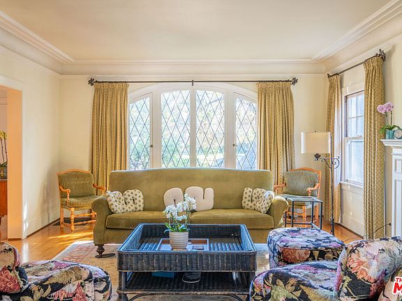 Character abounds in this lovely Windsor Square Country English with a classic center hall floor plan. The spacious living room boasts a fireplace and leaded windows. An adjacent cozy family room with French doors leads to a charming, covered patio. The formal dining room with leaded windows is accessed by pocket doors off the entry. The bright and airy kitchen is equipped with newer appliances, a butler's pantry and an inviting breakfast nook. Also, downstairs there is 1 bedroom and 1.5 baths. Upstairs is a landing with built-in bookcases, 4 bedrooms and 2 updated baths. Hardwood floors throughout. Guest house above garage with kitchen and bath. Generous backyard with a pickle ball court and raised beds for your vegetable and herb garden. Plus, a drought tolerant front yard and EV charger. Enjoy Robert Burns Park and Larchmont Village's farmers markets, cafes, shops and yoga studio just a few tree lined streets away.