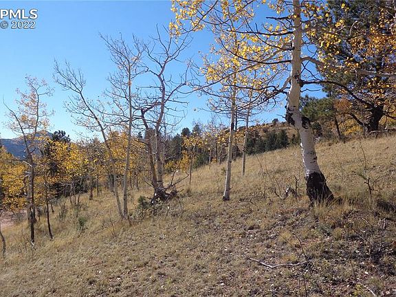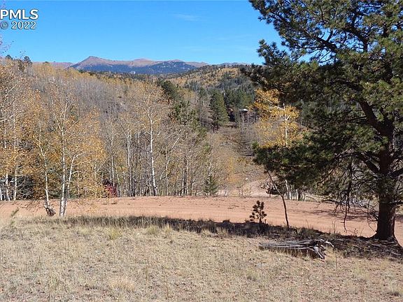 What a great spot for enjoying a view of Pikes Peak and Mt Pisgah! 1.36 acre lot on a quiet cul de sac road in Cripple Creek Mountain Estates. Beautiful lot is unique in that you could access from cul de sac above or from the road below depending on what you and your imagination do with this beautiful gently sloping property. This area is about 10 minutes from Cripple Creek and its amenities, and about 30 to Gold Medal fishing. Association has a clubhouse with indoor pool, weight room, workout room, and outdoor amenities of pickle ball court, tennis court, playground, grills and green space.