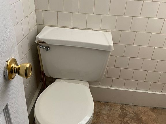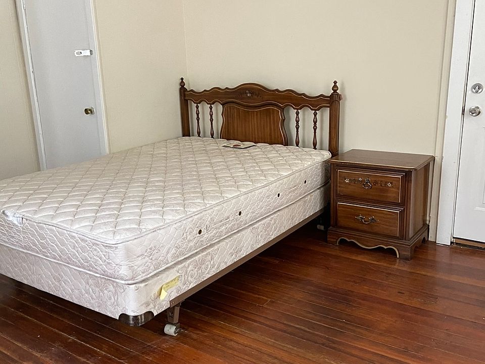 Spacious first-floor studio featuring one large room, a bathroom and a kitchen with a front and rear entrances.