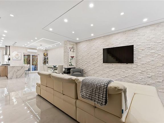 Tucked away on a serene, dead-end street in one of Manhattan Beach’s most coveted enclaves, this two-family brick residence masterfully blends timeless elegance with modern innovation. The spacious three-bedroom owner’s duplex pairs beautifully with a private one-bedroom apartment—enhanced by the rarity of a private driveway. The main level welcomes you with a bespoke shoe and coat closet, flowing seamlessly into sun-drenched living, dining, and breakfast areas. Arctic White heated ceramic floors, custom wall finishes, recessed lighting, and an electric fireplace set a refined tone. The sleek European kitchen boasts premium appliances, a farmhouse sink, glossy cabinetry, granite counters, and a light-filled window, with a sliding glass door opening to a private terrace and built-in BBQ—perfect for al fresco entertaining. Upper Level, the master suite overlooks the tranquil garden, offering a custom wall-to-wall closet, spa-style en-suite with dual showers, powder station, heated floors, and picture window. Two additional bedrooms with built-ins share a luxe bath with deep soaking tub, washer/dryer, and floor-to-ceiling tile. The ground-level apartment features a generous living room, Murphy-bed bedroom, granite-clad kitchen, washer/dryer, and private bath, with two entrances and a charming courtyard. Low-maintenance outdoor spaces include a tiled, fenced backyard and a welcoming front terrace with European door. Premium upgrades—Pella windows, Toto floating toilets, Grohe fixtures, split A/C, radiant floors, new roof, copper water line, hurricane-grade wall, and more—ensure lasting quality. Moments from private beaches, tennis, playgrounds, and top schools, this is sophisticated coastal living at its finest—with income potential in one of Brooklyn’s most prestigious neighborhoods.