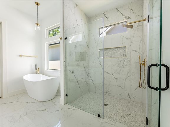 High ceilingsStainless steel appliancesLarge windowsSolid surface floorsQuartz countertopsFree standing soaker tubSpacious island