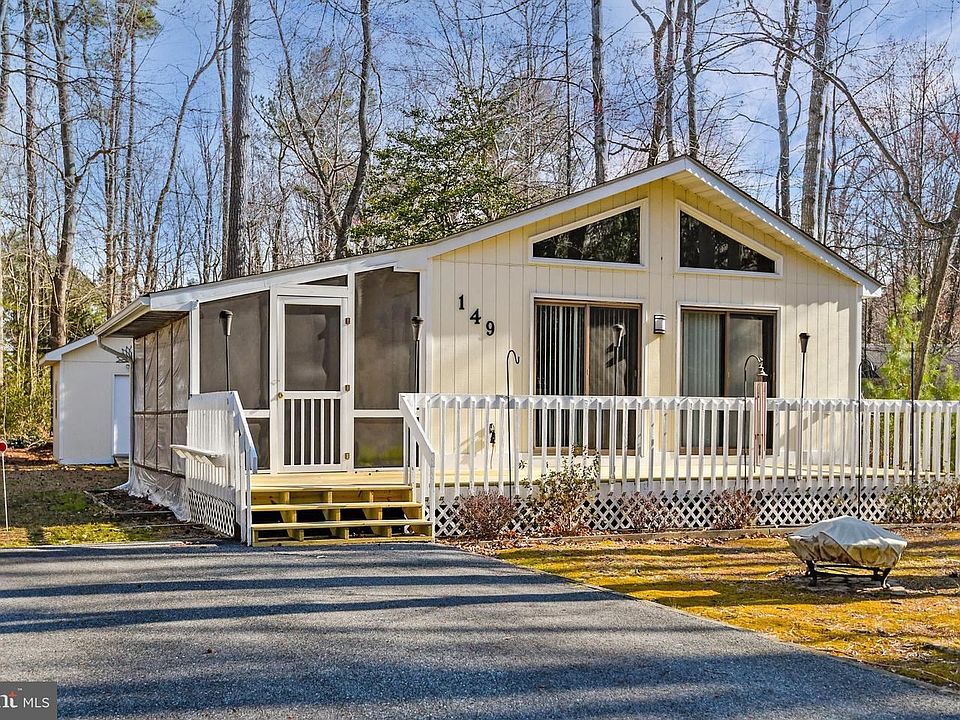 Introducing 149 Pinehurst Road, a really fun, contemporary ranch home offering an open concept floor plan with vaulted ceilings and plenty of natural sunlight. You'll feel the charm as soon as you walk in and see the gorgeous laminate wood floors, beams on the ceiling, ceiling fans and spaciousness. Sliders lead from the great room to a large deck on the front of the home that was recently completely redone. You'll enjoy a large screened porch to the side of the home that includes a nice set of patio furniture. The kitchen features white cabinetry recently repainted and matching white appliances. All of the interior rooms of the home have been freshly painted and two bedrooms had new carpeting installed making this home move in ready. Owners recently upgraded the bathrooms with new toilets and vanities. There is a shed with electricity and a workbench. This home is located on a quiet street within walking distance to a lovely community park, Bainbridge Park. Come see this charming home and all that Ocean Pines has to offer. Sellers providing a one year HMS Home Warranty.