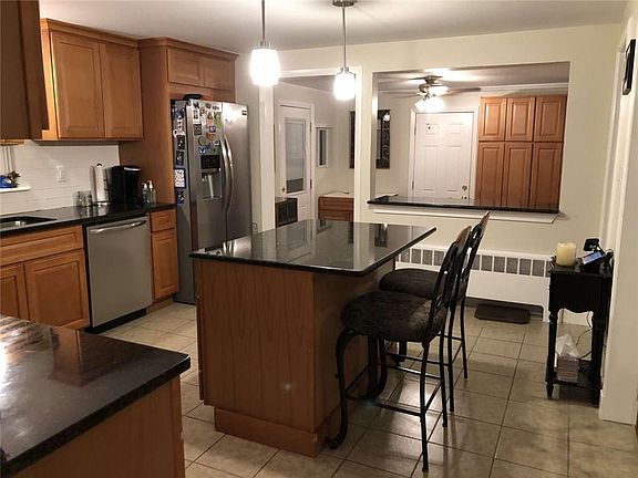 DEAN ESTATES. Make Your Offer. Brick front ranch style home with a 1-car attached garage. Almost all NEW! This home offers 2-3 bedrooms, 2 full baths, full kitchen , dining room, fireplaced living room with a large bay window for optimal lighting, entertainment room, and plenty of storage. New and remodeled in the last 5 years which includes- boiler, central air conditioning. granite kitchen with island , smudge proof stainless steel appliances ( 5 burner gas stove, refrigerator , and microwave) with plenty of cabinet space, windows, siding and garage door. A brand new finished basement 3 years ago which includes a huge entertainment area with a custom oak and granite wet bar, full bathroom, and a bedroom/office with a large walk in closet, another zone for heat, and plenty of additional storage space . Brand new granite patio and fire pit area for outdoor entertainment. This home is in complete and better move in condition . All appliances are included .