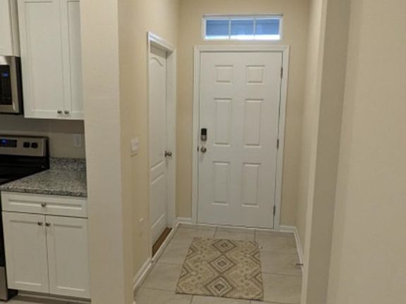 New Townhouse available NOW! 1/2 OFF first full month's rent! 2 Story: living on first floor with 2 master bedroom suites and laundry on 2nd floor. Tile throughout except for carpeted stairs, hallway and both bedrooms. Gourmet kitchen has stainless steel appliances, granite counter tops with quality cabinets and crown molding. Island sink and walk in pantry. Dining area between kitchen and living room. 1st floor half bath. Access to screened patio via sliding glass doors off living room. 2nd floor has split floor plan with laundry room. Washer and Dryer included. Two master suites include full private bathrooms, closets, and white faux wood window blinds. Master has shower, double vanity sinks and walk in closet. 2nd Master has tub/shower combo and single vanity. Oversized single car garage with garage door opener. Community playground. New community off Belle Terre Parkway near schools and shopping. Gated community once neighborhood is completed. Lawn care is included. US 1 to I-95 not far. Pets TBD under 20 lbs. only! Tenant occupied. 24 hour notice for showings. Call or email listing agent for pre-qualification requirements and showings.