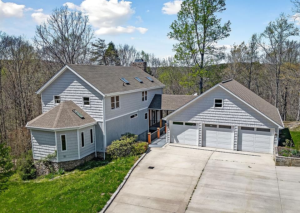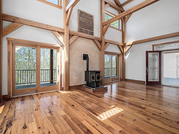 This exquisite, custom built timber frame retreat nestled on 6.46 acres with spectacular views is waiting for you! This home's interior is character filled with soaring wood ceilings, gorgeous hardwood flooring & plenty of windows to enjoy all of nature's outside views. Entertaining a crowd is easy in the spacious living room with pellet stove that is open to the kitchen/dining area & allows all to enter out with ease to the gorgeous, covered wrap-around porch with outdoor fireplace. Main level primary suite offers private bath with heated tile flooring, custom closet/dressing room & connecting office with a domed ceiling. Upstairs 2 bedrooms, 1 full bath & a grand loft area overlooks the main floor. Full finished basement boasts a huge family room with a fireplace & set up with a projector to watch your favorite shows, along with flex room, + a safe room. Company visiting will not be an issue at this property - separate guest apartment features kitchen, LR, 1 bedroom + 1 bath.