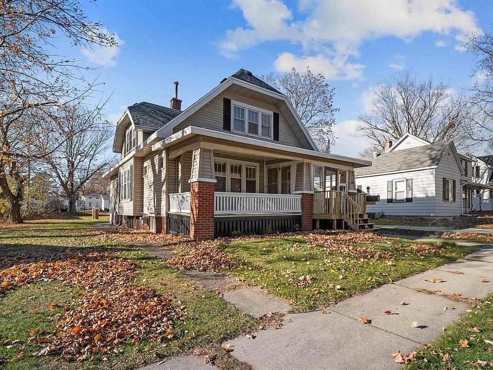 Charming 4-bedroom, 2-bath bungalow with duplex potential! Recently refinished original hardwood floors, classic built-ins, and rich wood trim highlight this character-filled home. The flexible layout offers an option for upper/lower units with separate entrances?great for investors or first-time buyers seeking income potential. Outside, enjoy the convenience of a 2-car detached garage, a low-maintenance yard, and a welcoming front porch that adds to the home?s curb appeal. Updates include: new kitchen sink & appliances, 2 new decks, fresh paint throughout, structural repair to garage. Measurements are approx. buyer to verify if material.