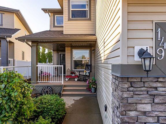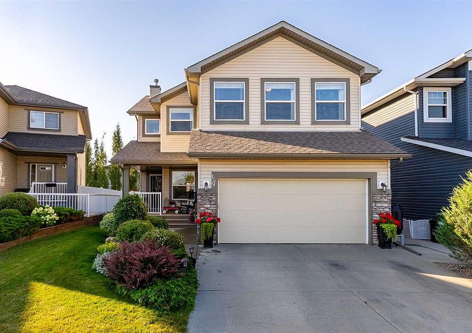 Welcome to this well cared for home in a quiet, prestigious CUL DE SAC, just steps from the LAKE, GREENSPACE TRAILS, and several great community amenities. With excellent CURB APPEAL and a charming WRAPAROUND FRONT PORCH, this home offers a warm welcome and a layout that works for everyday living. Inside, the MAIN FLOOR features an OPEN CONCEPT design with the KITCHEN, DINING, and LIVING AREAS flowing together. The KITCHEN has been RENOVATED with CUSTOM PAINTED SHAKER DOORS, DOORS, NEW HARDWARE, and UPDATED QUARTZ COUNTERTOPS. It includes a LARGE ISLAND with SEATING, generous counter space, and a window above the sink that brings in NATURAL LIGHT. A bright HOME OFFICE is located at the front of the home with TWO LARGE WINDOWS. Upstairs, you’ll find FOUR BEDROOMS, COMPUTER NOOK for homework or family use, and a spacious PRIMARY BEDROOM with a PRIVATE ENSUITE. Large windows throughout bring in lots of NATURAL LIGHT, and all window coverings and curtains are in excellent condition. The FULLY DEVELOPED BASEMENT offers space for a HOME GYM, SHOP, REC ROOM, or an optional FIFTH BEDROOM with an EGRESS WINDOW already in place. There is also a TON OF STORAGE, well organized and ready to use. The SOUTH FACING BACKYARD is beautifully landscaped with SHRUBS, FLOWERS, and RAISED GARDEN BEDS. The WHITE VINYL FENCING is in excellent shape and completely maintenance free. A LARGE COMPOSITE DECK with METAL RAILINGS, a well maintained PATIO, and STONE WALKWAYS create an outdoor space that is both functional and relaxing. The ALLEY behind the home adds extra privacy and convenient yard access. All of this is within walking distance to GENESIS PLACE, an OUTDOOR GYM, HOCKEY RINK, TENNIS COURTS, ATHLETIC FIELDS, PARKS, and SCHOOLS. You are walking distance to all three levels of schooling, ELEMENTARY, MIDDLE, and HIGH SCHOOL, making this an ideal home for families of all ages. This is a clean, move-in-ready home in a walkable, family friendly location with thoughtful updates and excellent outdoor space.