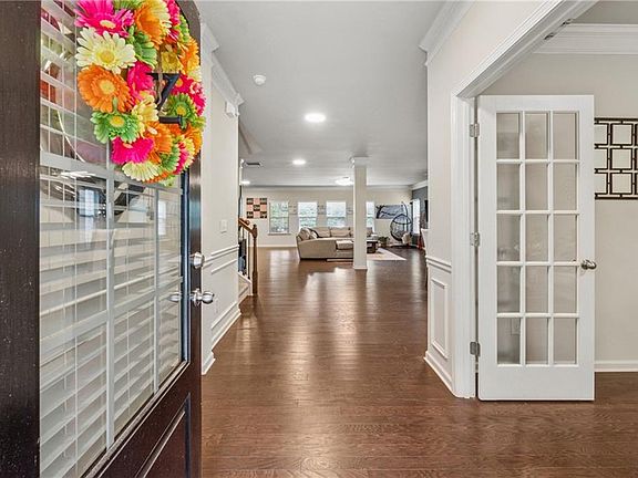 Welcome to this beautifully maintained 4-bedroom, 3.5-bathroom home in the highly desirable Cornerstone Manor community. Built in 2014, this 3,600 sq ft residence offers a perfect blend of space, style, and functionality in a prime location. The open-concept main floor is ideal for both everyday living and entertaining, featuring a massive family room, dining area, and kitchen that all flow seamlessly together. You'll love the rich hardwood floors throughout the main level, adding warmth and sophistication to the living spaces. The kitchen is a standout with its espresso cabinetry, granite countertops, an oversized island, and plenty of counter and storage space. Just off the main living area is a dedicated office with French doors, perfect for remote work or study. Step out onto the large screened-in porch—a peaceful retreat for relaxing or entertaining—overlooking a flat, usable backyard. Upstairs, you’ll find four spacious bedrooms and three full bathrooms, including a private en-suite in one of the secondary bedrooms. The owner’s suite is a true highlight with a tray ceiling, generous proportions, and a luxurious en-suite bath featuring a tiled shower, dual vanities, and ample closet space. A large loft area offers flexible space for a game room, media center, or teen hangout. Located just minutes from downtown Woodstock and Roswell, this home offers easy access to vibrant shopping, dining, and entertainment options. Zoned for top-rated schools: Little River Elementary, Mill Creek Middle, and River Ridge High.