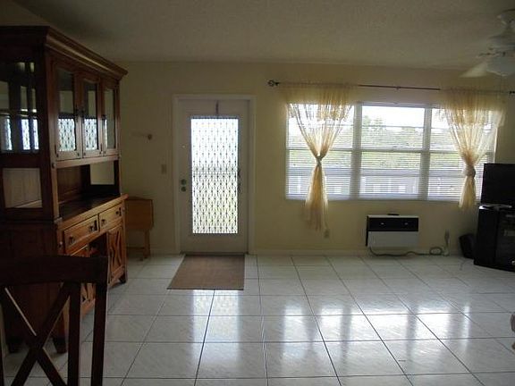 Seasonal Rental available in 55+ Century Village. Walk to houses of worship. King sized bed. 2 TVs. Tiled to bedroom. Stall shower. Enclosed patio, tiled with closet & view overlooking pool.