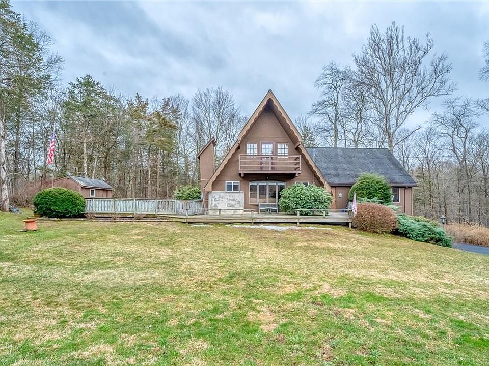 Two additional bedrooms, a full bath and a large room currently used as an office are on the second floor. There is a charming balcony off the north facing bedroom where you can watch the deer enter the meadow at twilight. The finished walkout basement is divided into recreational and creative areas with access to the 2 car garage. At 2700 sq ft, the deck, with storage shed and a hot tub, doubles your ability to accommodate a large family barbecue and enjoys a view of the forest, fauna and flora.***The owners have a secret that I will share…well maintained paths have been created leading you to the year round, incredibly delightful stream that traverses the rear of the 2.7 acre property. Centuries ago the stream carved through the rock ledge that Stone Ridge is known for, creating multiple pools of clear sweet water to cool you off on those hot summer days.***