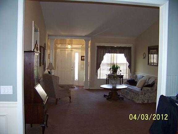 THORNHILL model which backs to the trees. The optional Sun Room was added on and exits to a large paver patio which gives you a peaceful view of the trees - in addition, built-in book cases with a computer desk has been installed. The optional fireplace is also an attractive addition to this well kept home. The custom made hand crafted wainscoting and picture molding found throughout this home would only be expected in multi-million dollar homes. It starts with the custom made dual pillars in the entry area & continues with hand crafted moldings throughout the house. These additions are accent