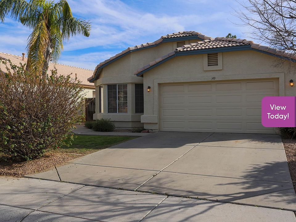 Come see this 3 bedroom / 2 bathroom home with a two-car garage! This home's interior features tile, carpet, and laminate hardwood flooring, ceiling fans, and vaulted ceilings. The kitchen features appliances including a stove/oven, dishwasher, microwave, and a pantry. The master bedroom includes a walk-in closet and a private bathroom with a separate shower/tub and a dual sink vanity! Enjoy sunny Arizona in your private fenced-in backyard with a covered patio and low maintenance desert landscaping. This home is located near the U.S. Route 60, loop 202, and State Route 87 freeways. Contact us to see this home today! Rent $1575 + 1.5% Tax + $10/mo Admin Fee Security Deposit $1575 (refundable) Cleaning Fee $250 (non-refundable) Pet Deposit $300 (refundable, with lessor approval) Earnest Deposit $500 Application $35 (per adult - can be paid through "paylease.com") Listed by: Arizona Gold Realty