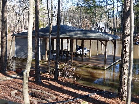A must-see 5,000+ sqft. quality custom-built home a "labor of love" for original owners. Open floor plan with an "oversize" family room w/fireplace, large kitchen & lakeside breakfast area. Enjoy hours of relaxation in the lakeside sunroom. Home features large kitchen w/solid surface countertops, double wall oven & hardwood flooring. 4 bedrooms, 3 1/2 baths, a large recreation room, office, craft/anything room, 3-car garage, plus security system. Exterior features a flat lot leading to a double boathouse with approximately 6+ feet of water depth at end of the dock. Boathouse has one slip floor for entertainment activities. Yard area has a split-rail/wire fence and lake water irrigation system. Additional features 2-tankless hot water heaters, home generator, pool table & 2-chairs, owner-owned propane tank (contents convey). County water & weekly household waste pickup.