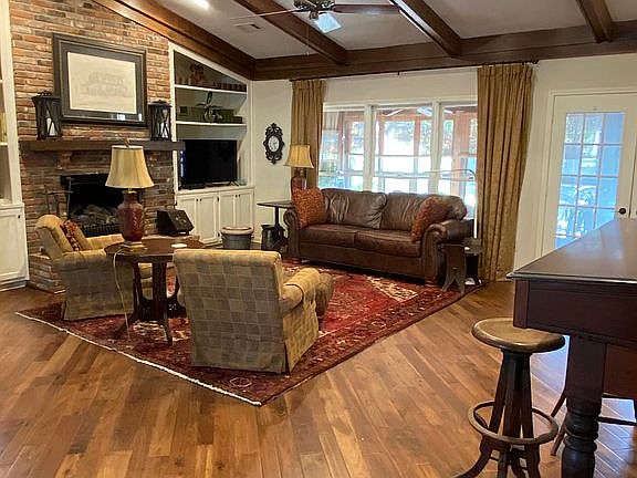 Beautiful country home in the city. This four-bedroom, three bathroom home is a stunning single story residence in pristine condition, blending modern elegance with functional design. Spanning approximately 3, 300 square feet, the home features an open layout with gleaming hard wood floors and beautiful vaulted beam ceiling throughout the main living area, creating a warm inviting atmosphere. The master suit is a private retreat with a walk in closet and a traditional extra large step in closet. The bathroom has a beautiful soaking tub and a recently renovated walk in shower. This home has a beautiful bright sunroom with floor to ceiling windows and a view of the back porch and yard. There is a natural gas generator attached to the house and a natural gas connection for a grill on the covered patio. The stand alone 340 square foot workshop has a garage door entrance and access to both the front and back yard. Home has an attached two car, newly painted garage. There is in ground sprinkler system for entire yard. The exterior of this home is natural cypress siding, and the 1/2 acre lot is tree shaded.