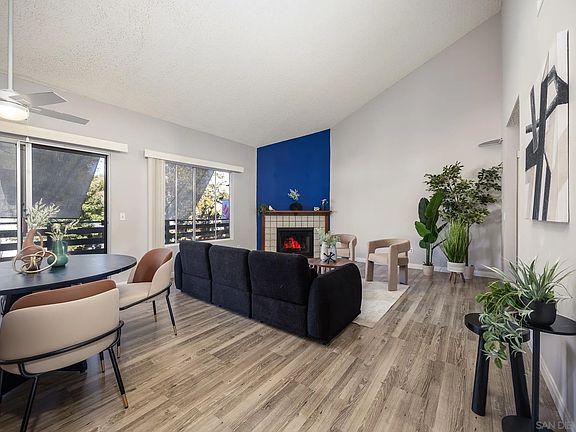 Welcome to 1490 Gustavo Street Unit E a stylish upper level end unit in the quiet Windridge community of El Cajon. This bright 2 bedroom, 2 bath condo features vaulted ceilings, a cozy fireplace, modern flooring, in unit laundry, and a private balcony. The open living space flows into a spacious kitchen with stainless steel appliances. Enjoy a 1 car garage, an extra parking spot, and resort style amenities including two pools, hot tubs, BBQ areas, RV parking, and lush landscaped grounds. Conveniently located near shopping, dining, and freeway access this home is move in ready and full of charm.