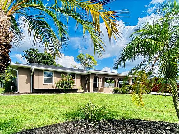 Welcome to this stunning, move-in ready, 3 bedroom, 2 full bath waterfront pool home. Situated on a freshwater canal offering a beautiful, quiet & private backyard oasis with mature mango, avocado & fig trees where you can walk right in your yard & pick fresh fruit throughout the season. The backyard space offers an in-ground screened in pool and screened patio with bamboo privacy & water views, an outdoor entertainment deck, carport with oversized driveway to accommodate vehicles along with a boat or RV, ample space for gardening and activities with direct backyard water access for fishing & kayaking - all while remaining outside of any flood zone for added peace of mind. Upon entering the open-style layout, the modern kitchen amenities include granite kitchen countertops with stylish backsplash, brand new stainless kitchen appliances & ample cabinetry. Large laundry room offers washer, dryer & lots of extra storage space. The master bedroom offers pool views, ensuite bath and spacious walk-in closet. The two additional bedrooms have built-in window seating for maximizing space. Meticulously maintained & upgraded, this home offers a new roof May 2024, New Gutters & Downspouts 2025, New HVAC system 2024, New Septic Tank 2023, New Pool Pump 2025, Updated wifi thermostat, New Alarm System 2025, Updated electric panel, Updated hot water tank and a large 4" spray foam insulated Florida room for added efficiency and space while overlooking your beautiful resort-style backyard. This home is Florida living at its finest.