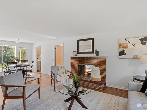 Floor-to-ceiling windows, overlooking your entertainment-sized patio & spacious back yard, welcome you to this one-level home. Three bedrooms plus an office on one floor. Gorgeously remodeled kitchen with farmhouse sink, quartz counters & stainless steel appliances. Charming 2-sided fireplace between living room & office. Beautiful hardwood floors. Updated bathroom. Large primary bedroom with French doors. Fenced back yard with huge shed (15’ x 15’) to store all your outdoor toys & tools. Freshly painted interior. Double-paned windows. Shoreline schools! Walk or bike the Interurban Trail, just a few blocks away. Quick walk to shops & restaurants. Easy access to I-5/99. Shoreline light rail stations set to open this year! Preinspected!