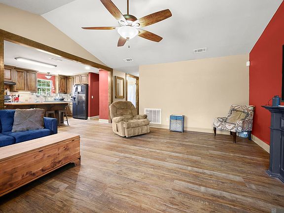 The heart of this house is its spacious, light-filled living room that flows seamlessly into the open-concept kitchen. This design is perfect for entertaining. The kitchen features an eat-in design centered around a large island with a built-in breakfast bar ideal for morning coffee or casual meals. There's plenty of counter space and cabinetry, making organization a breeze. You'll also appreciate the convenience of a large utility room, offering ample storage and workspace to keep your main living areas clutter-free. No carpet throughout makes clean up a breeze. The large lot is a blank canvas for you to design your dream outdoor living space.