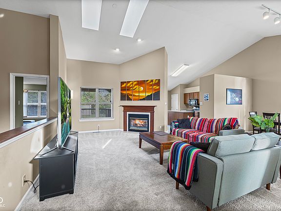 Welcome to this inviting 3-bedroom, 2-bath ranch home situated on a large corner lot, featuring a dedicated office and a desirable split floor plan. The spacious living room is centered around a double-sided gas fireplace that creates warmth and charm throughout the main living areas, flowing seamlessly into the open dining space and eat-in kitchen. The primary suite offers a walk-in closet and a private bath with dual vanities, a soaking tub, and a separate shower. One secondary bedroom is tucked away on the opposite side of the home for added privacy, while the third bedroom is conveniently located near the office and primary suite. Step outside to a generous deck, perfect for entertaining or enjoying quiet evenings. Additional highlights include a two-car garage, dedicated laundry room, and peace of mind with a roof replaced in 2016 with 35-year shingles.