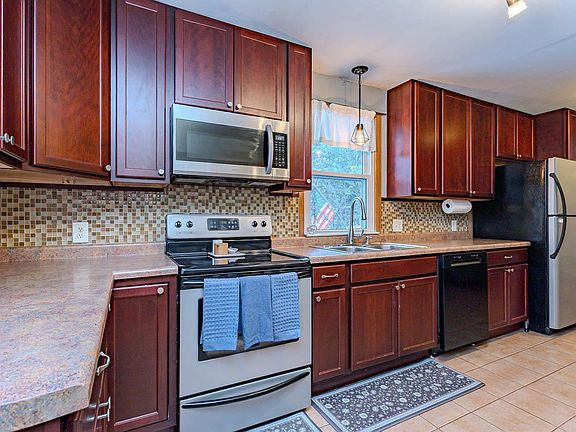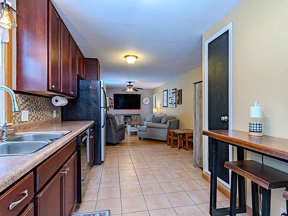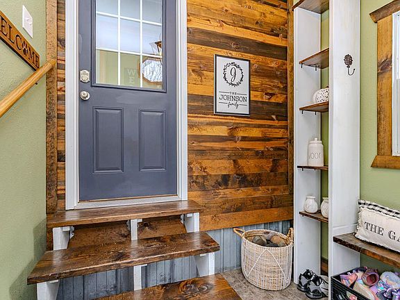 This charming and updated 2-bedroom, 1-bath home is ready for its next owner and sits on a spacious .9-acre lot close to a public boat landing. Enjoy a fully fenced backyard with a beautiful covered patio structure and fire pit area, ideal for outdoor gatherings. The front deck features brand-new deck boards and railing installed in 2024. The home offers a great entryway with built-in space for hanging jackets, storing shoes, and adding decorative touches?a functional and welcoming area as you step inside. The interior features an eat-in kitchen with a tile backsplash, plenty of cabinets, and a pantry. The living room includes a patio door that leads directly to the front deck, bringing in excellent natural light. Both bedrooms are generous in size, including one that is exceptionally large. The second bedroom features custom-made barn doors on the closet and custom barn-door-style shutters on the window, adding unique character. The lower level provides a spacious finished area for additional living space. The home features several modern updates, including improved windows, fu